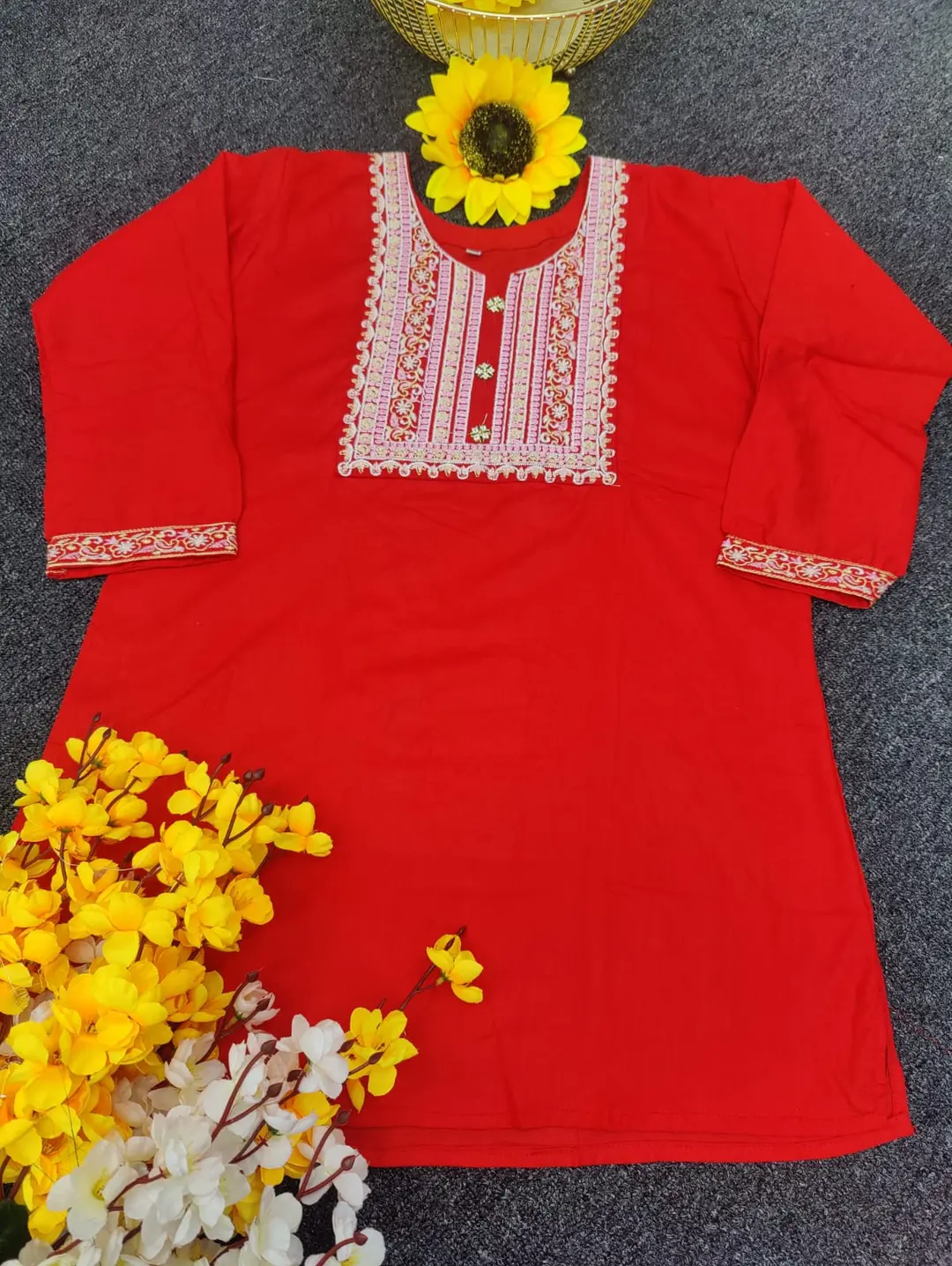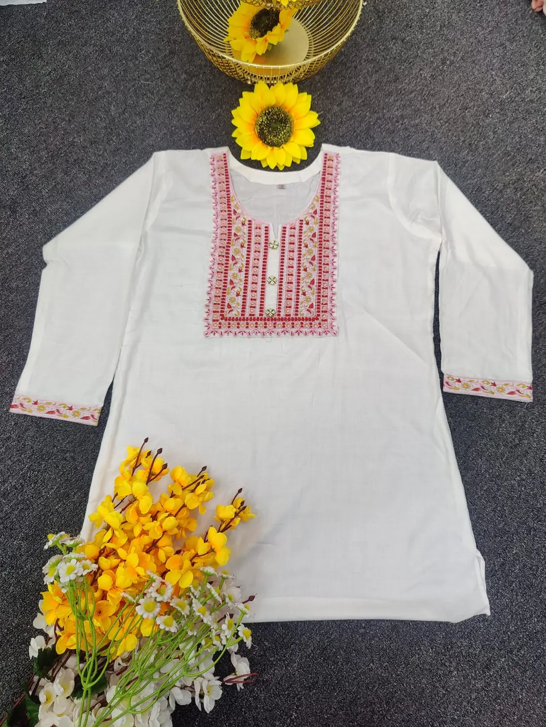 সুতি কাপড়ের উপর সুন্দর করে গলায় এবং কি হাতায় এমব্রয়ডারি কাজ করা থাকবে।